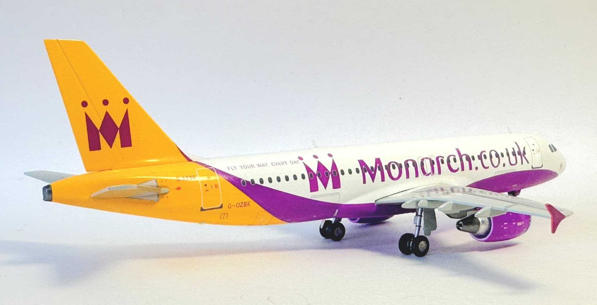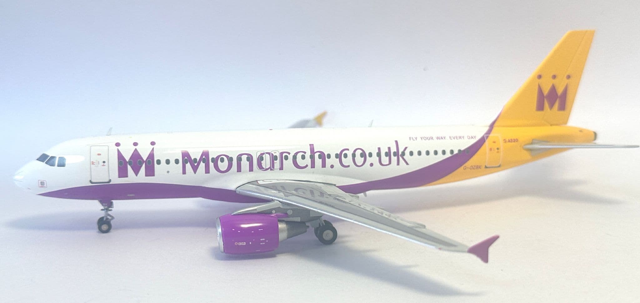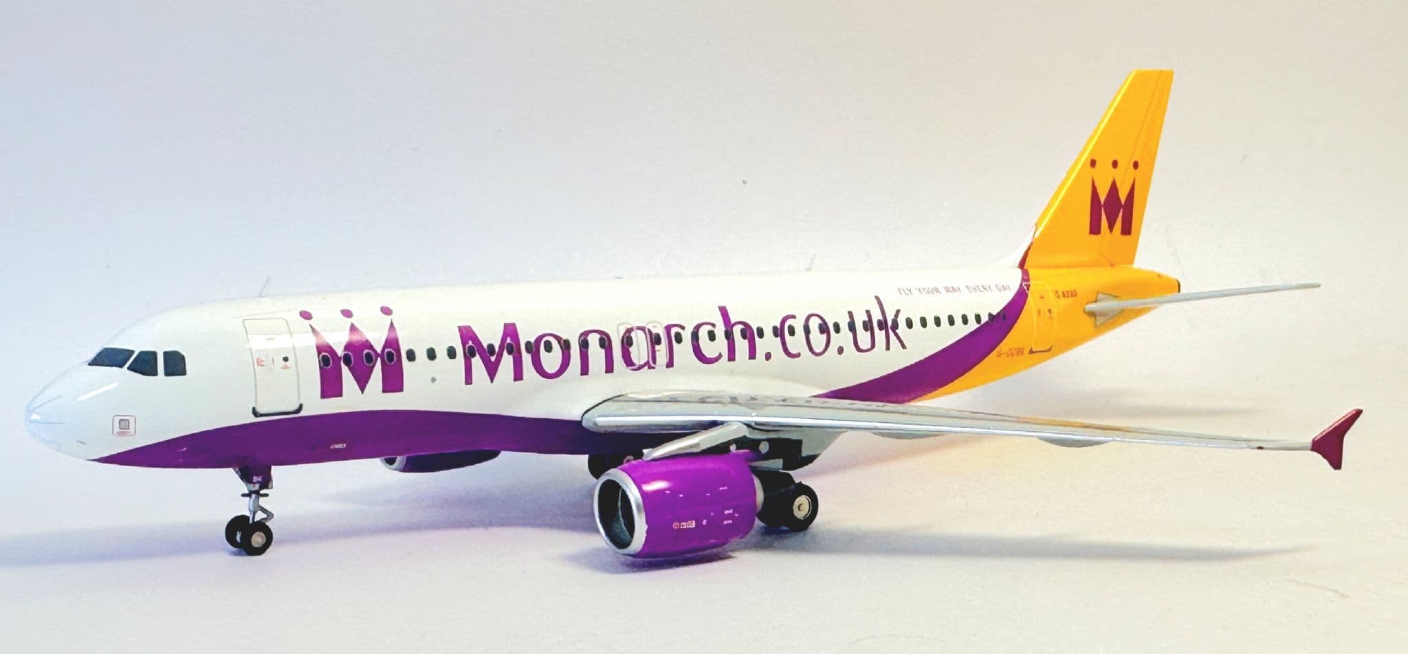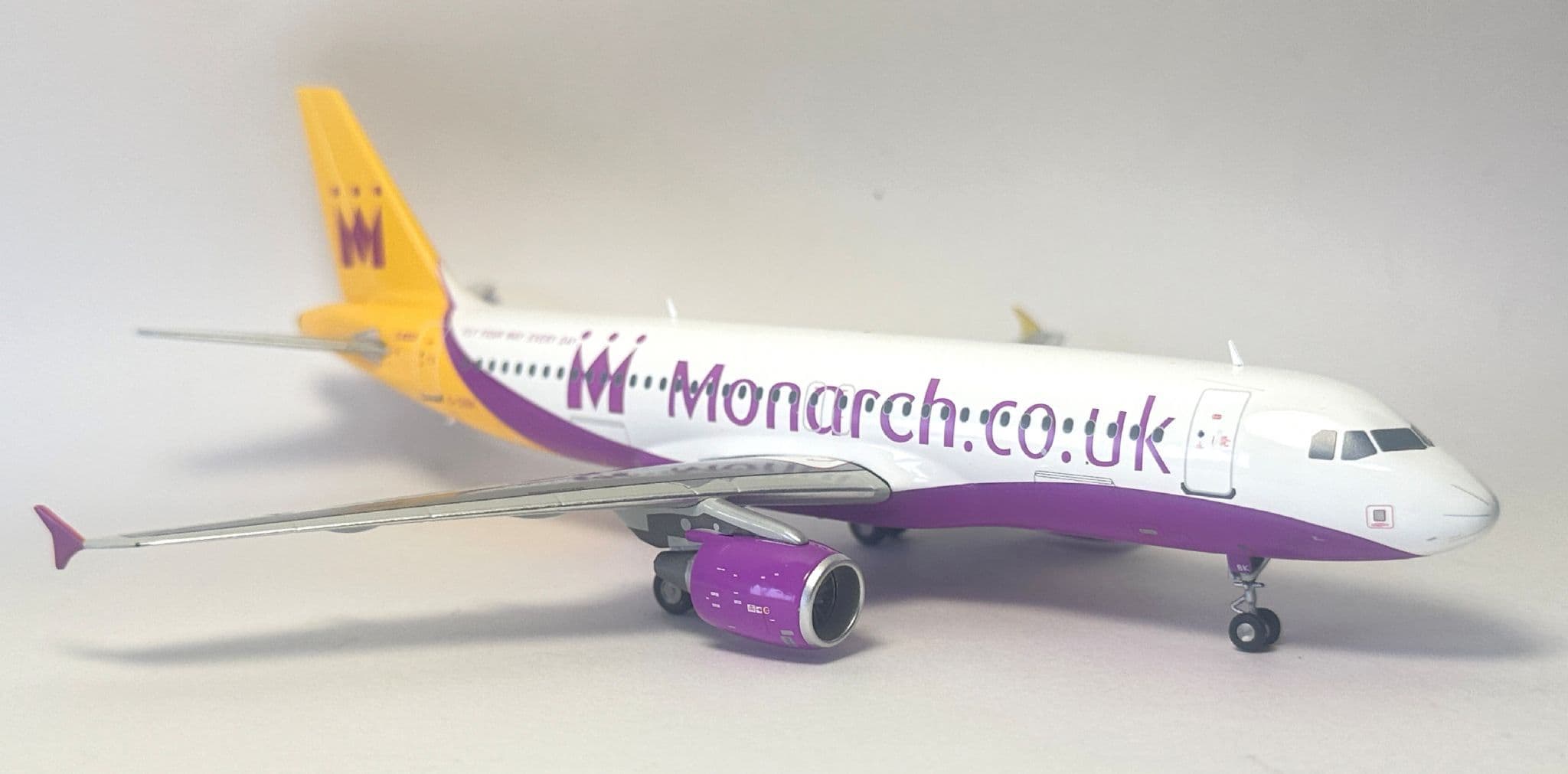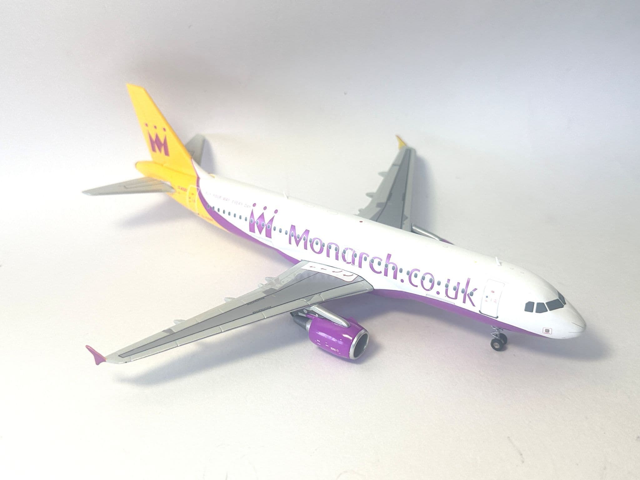 This high-quality model features accurate proportions, crisp printed markings, and a solid metal construction. The classic Monarch colours are faithfully reproduced, offering a nostalgic tribute to the airline that served UK travellers for decades.