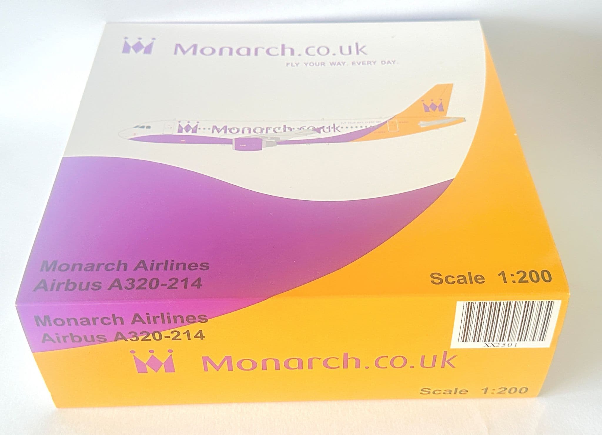Celebrate a piece of British aviation history with this detailed JC Wings Airbus A320 model in the much-loved Monarch Airlines livery. Produced in 1:200 scale, this die-cast collectors model (Item XX2501) captures the look and character of Monarch’s modern fleet, making it a standout addition for collectors and enthusiasts alike.