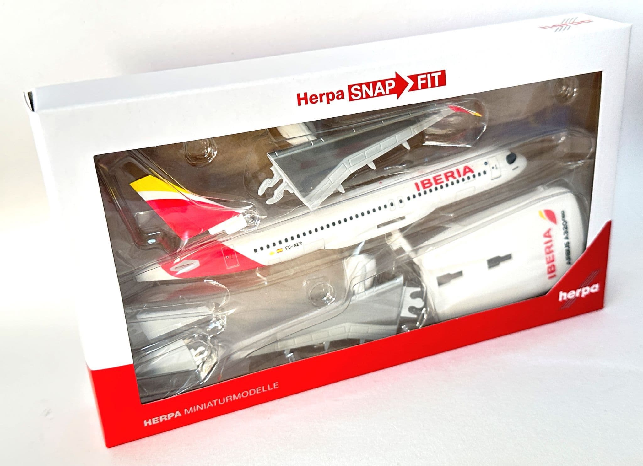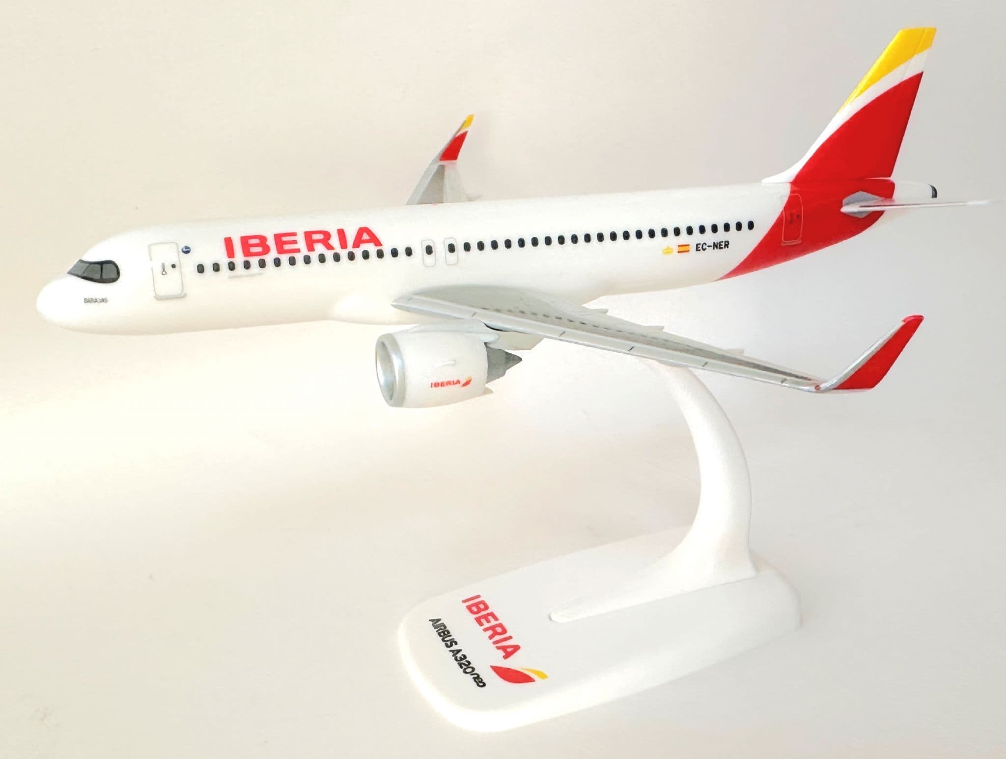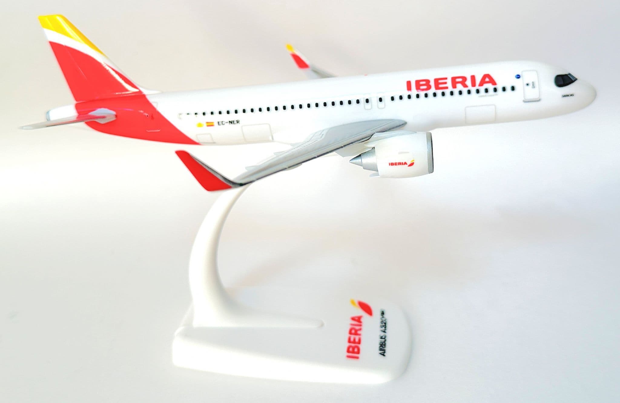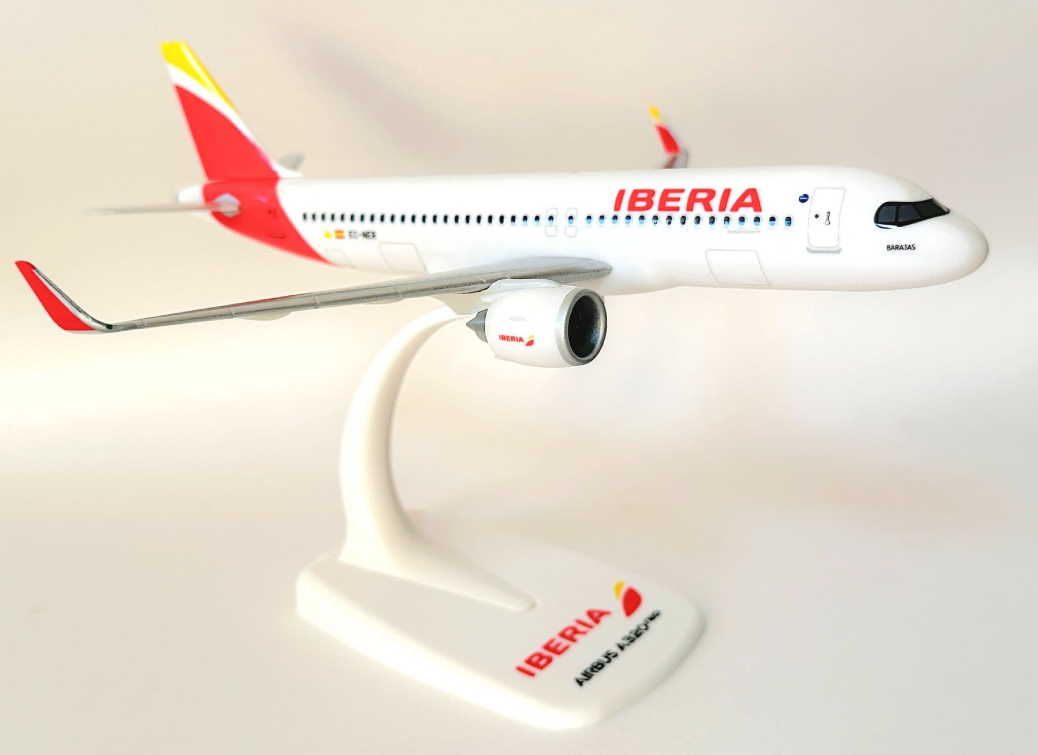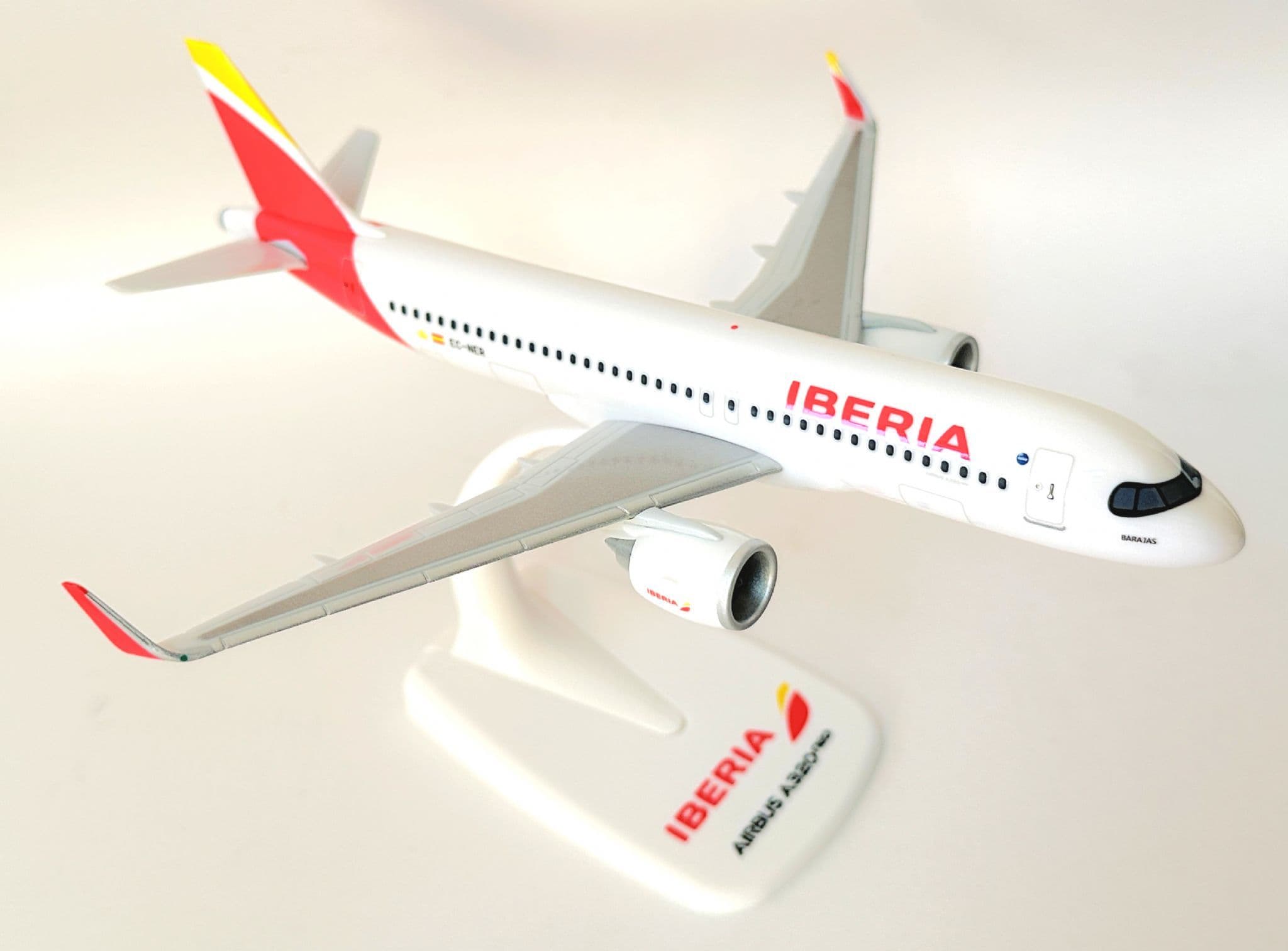 Enhance your collection with this sleek Airbus A320neo Snap-Fit model in the elegant Iberia livery. Produced in 1:200 scale, this officially licensed collectors model captures the modern design of the A320neo with clean moulding, sharp printing, and Iberia’s iconic red-yellow tail colours.