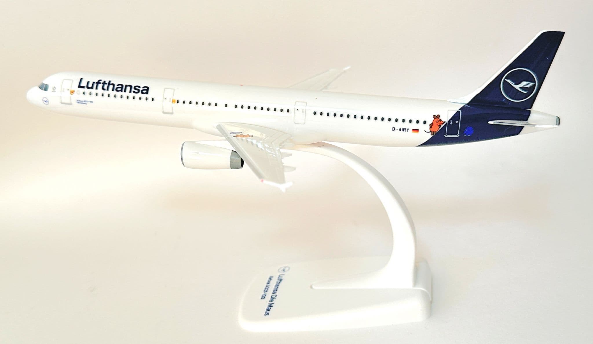 Herpa’s Snap-Fit range offers easy assembly, durable construction, and excellent printed detail. The model showcases Lufthansa’s modern branding combined with the unique “Die Maus” graphics, making it a standout display piece for collectors of special liveries and limited-edition designs.