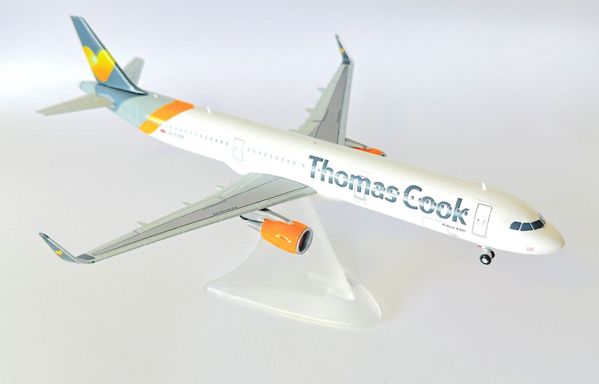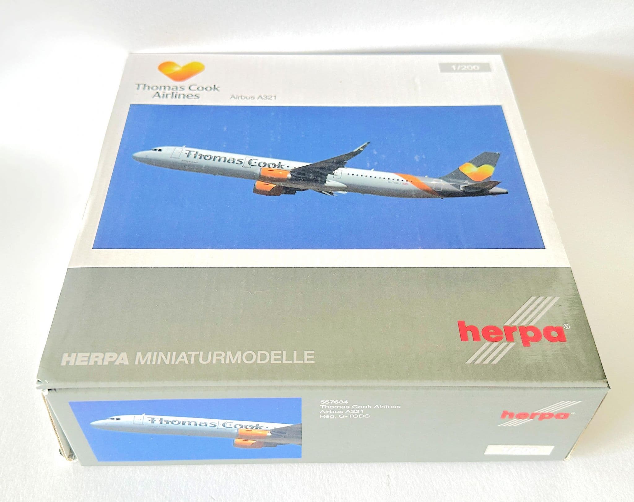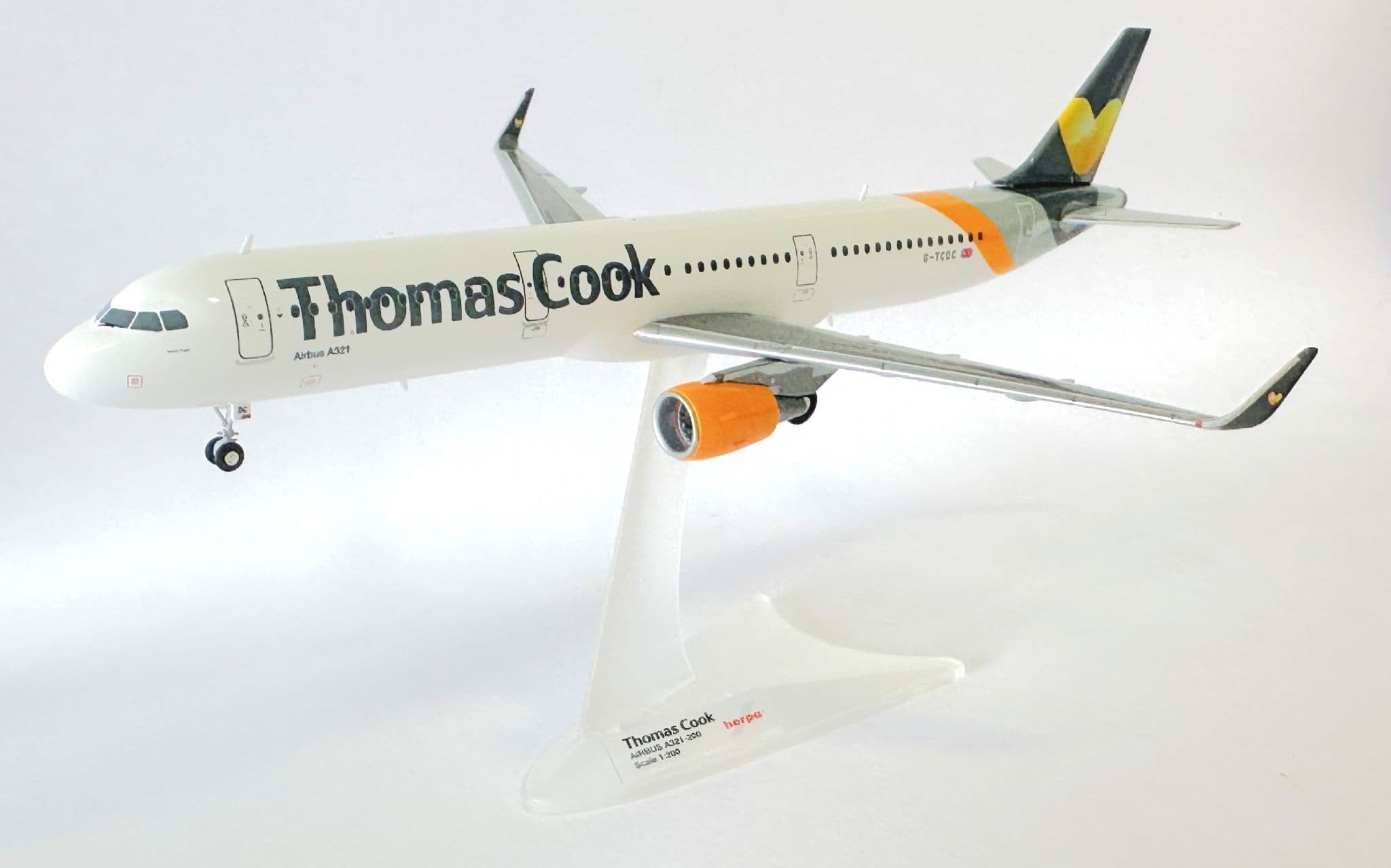 Crafted by Herpa, a brand known for precision and quality, this model features the authentic Thomas Cook livery, complete with detailed markings and the airline’s iconic sunny heart logo. Built in 1:200 scale, it combines accuracy with durability, making it a premium display piece.