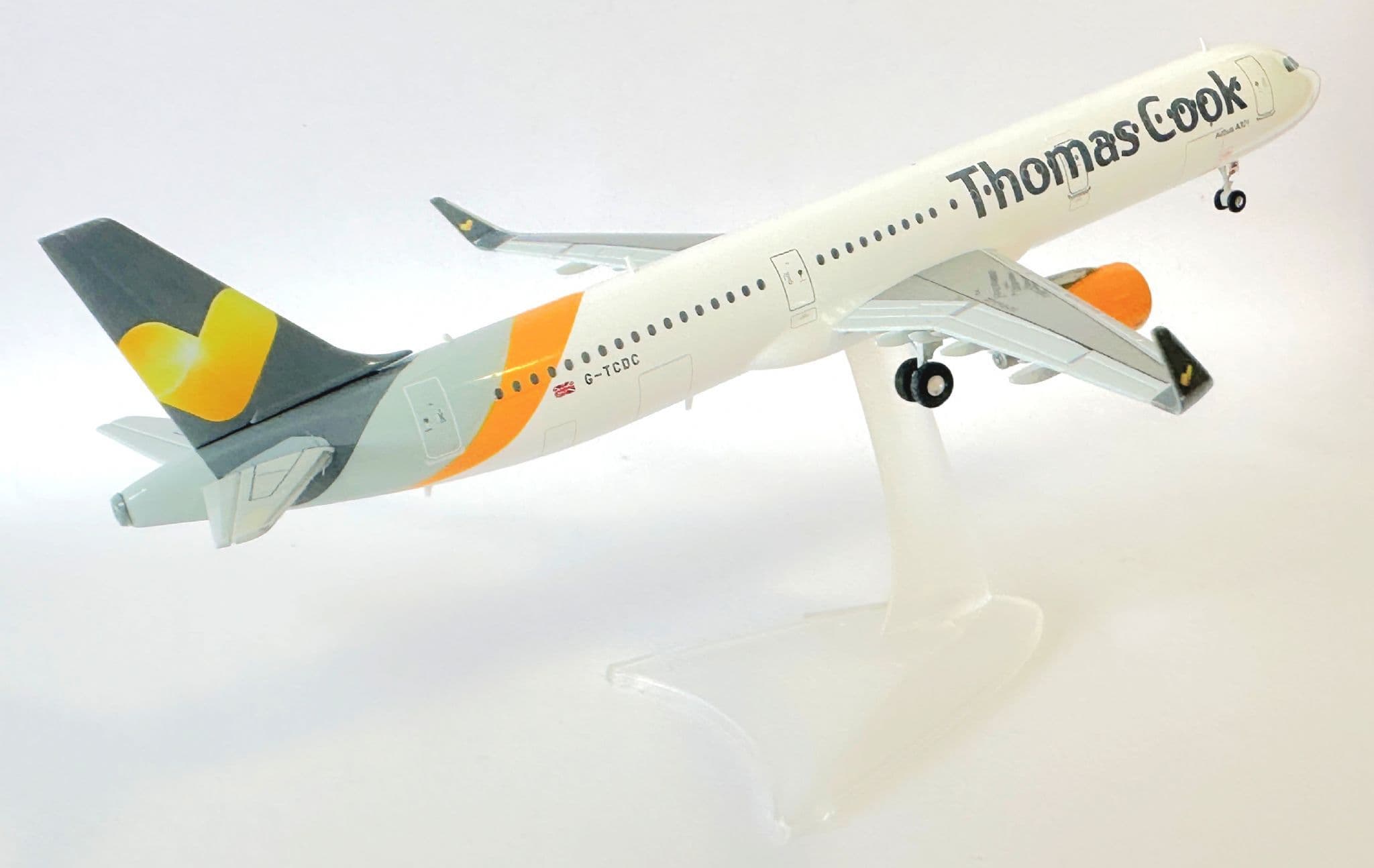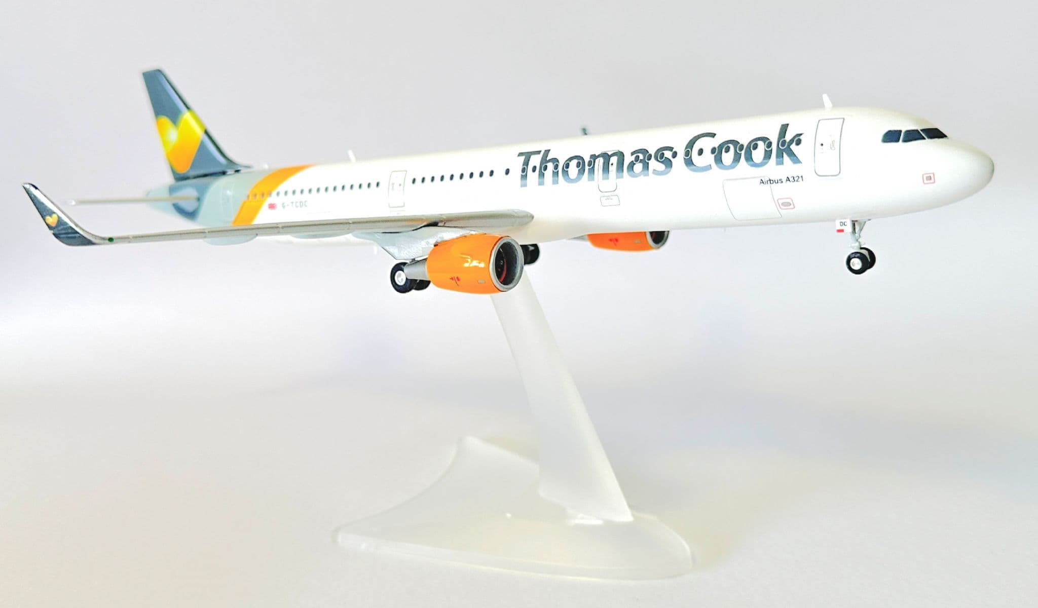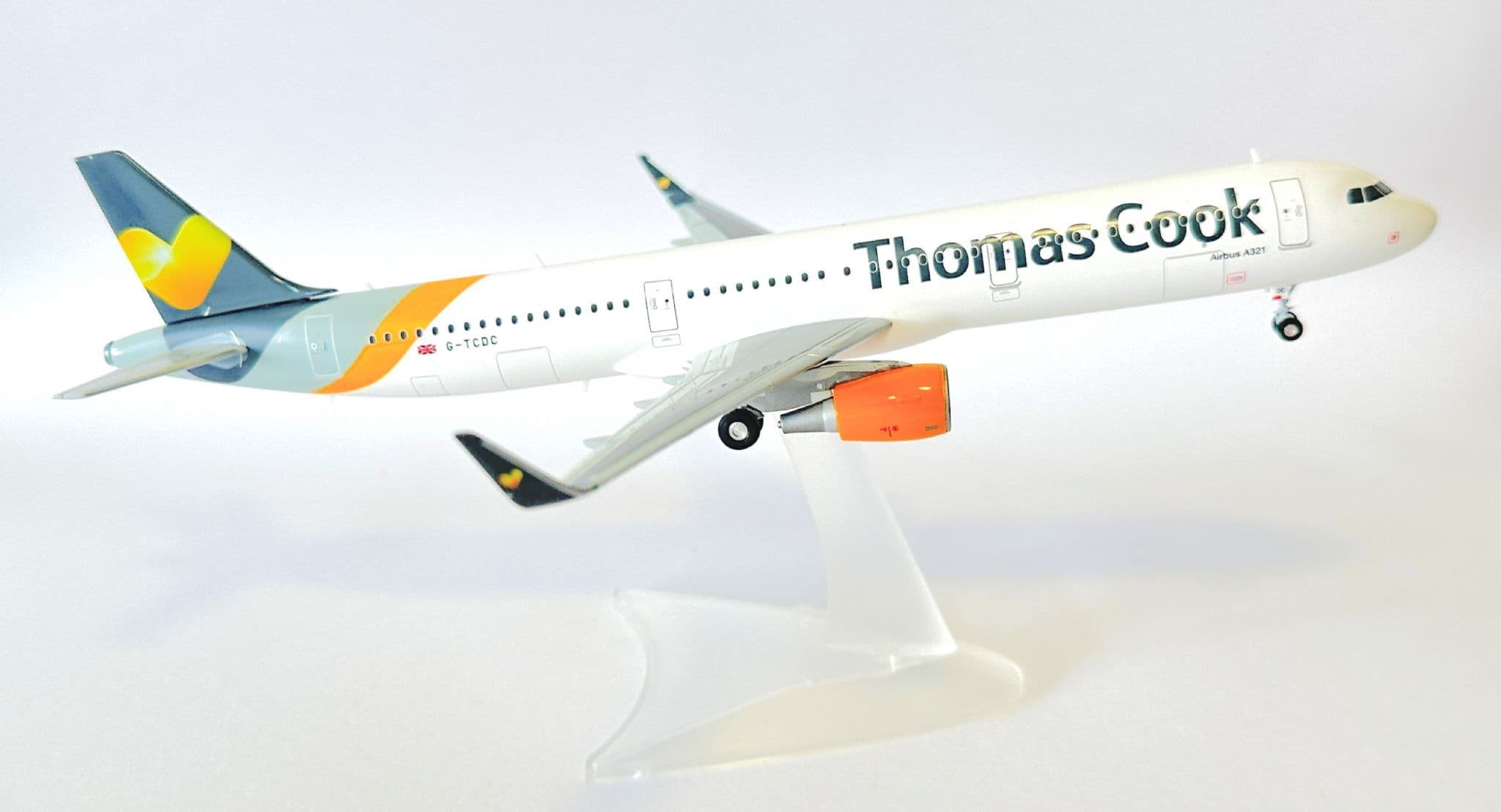 Crafted by Herpa, a brand known for precision and quality, this model features the authentic Thomas Cook livery, complete with detailed markings and the airline’s iconic sunny heart logo. Built in 1:200 scale, it combines accuracy with durability, making it a premium display piece.