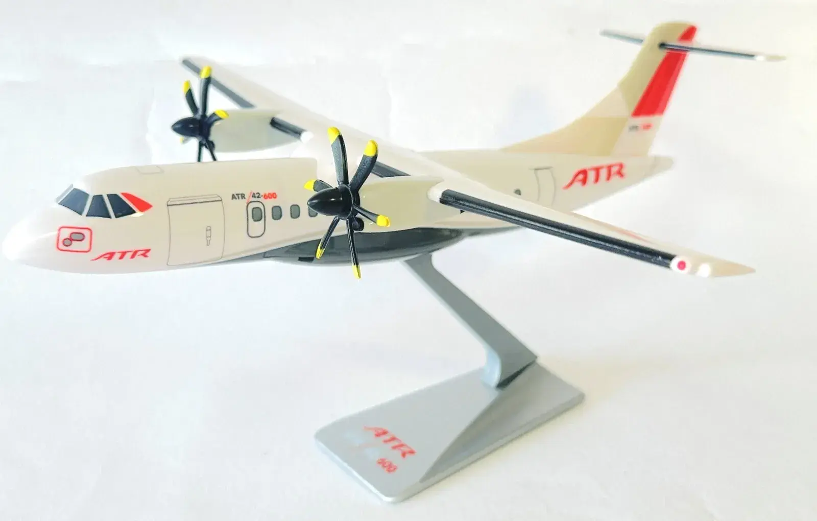 Showcasing cutting-edge regional aviation, the ATR-42-600 House Livery Collectors Model by Socatec is a 1:100 scale replica of the next-generation turboprop, as featured in ATR's official demonstration fleet. Finished in the manufacturer’s sleek house livery, this model represents innovation, performance, and the future of regional air transport.