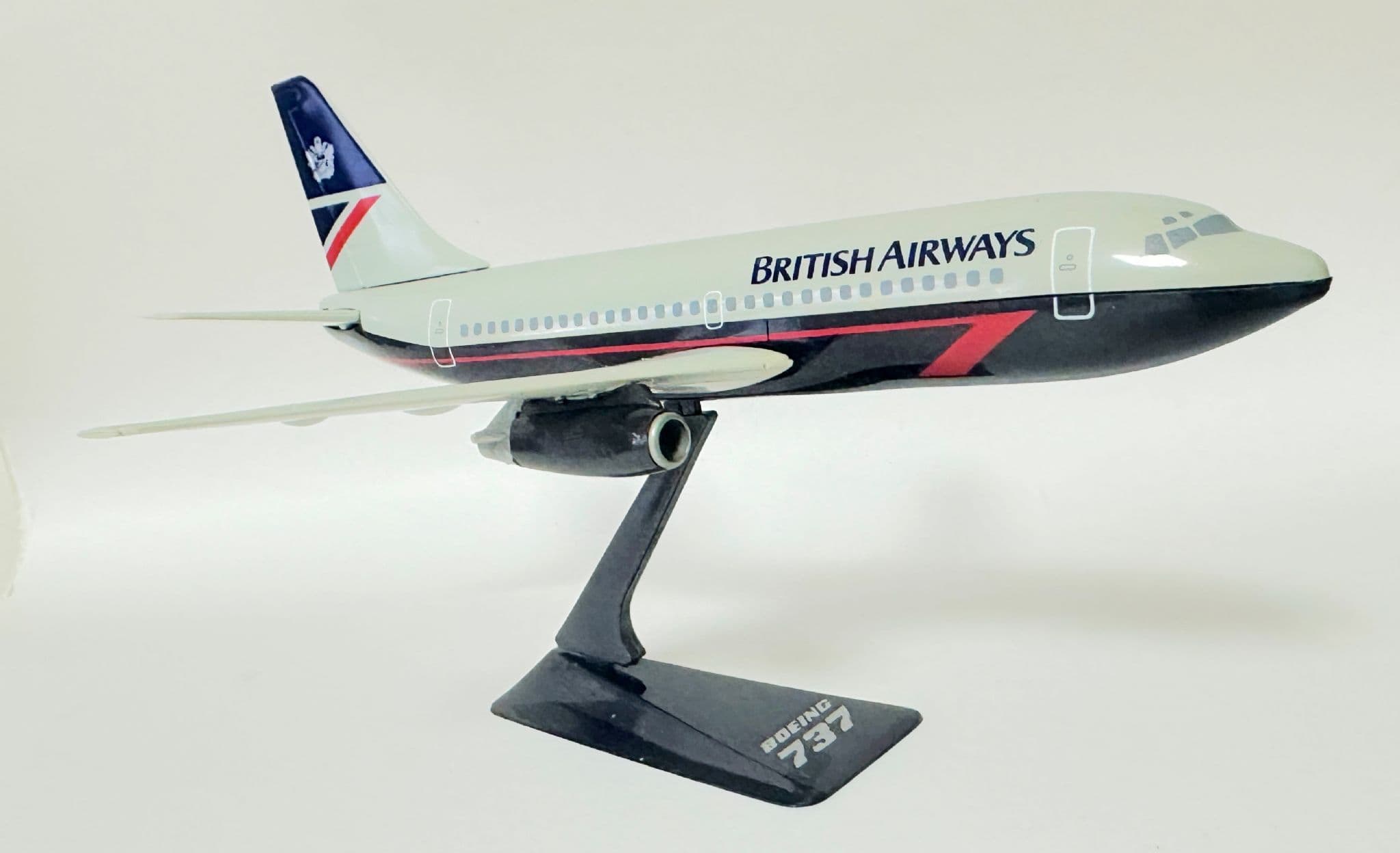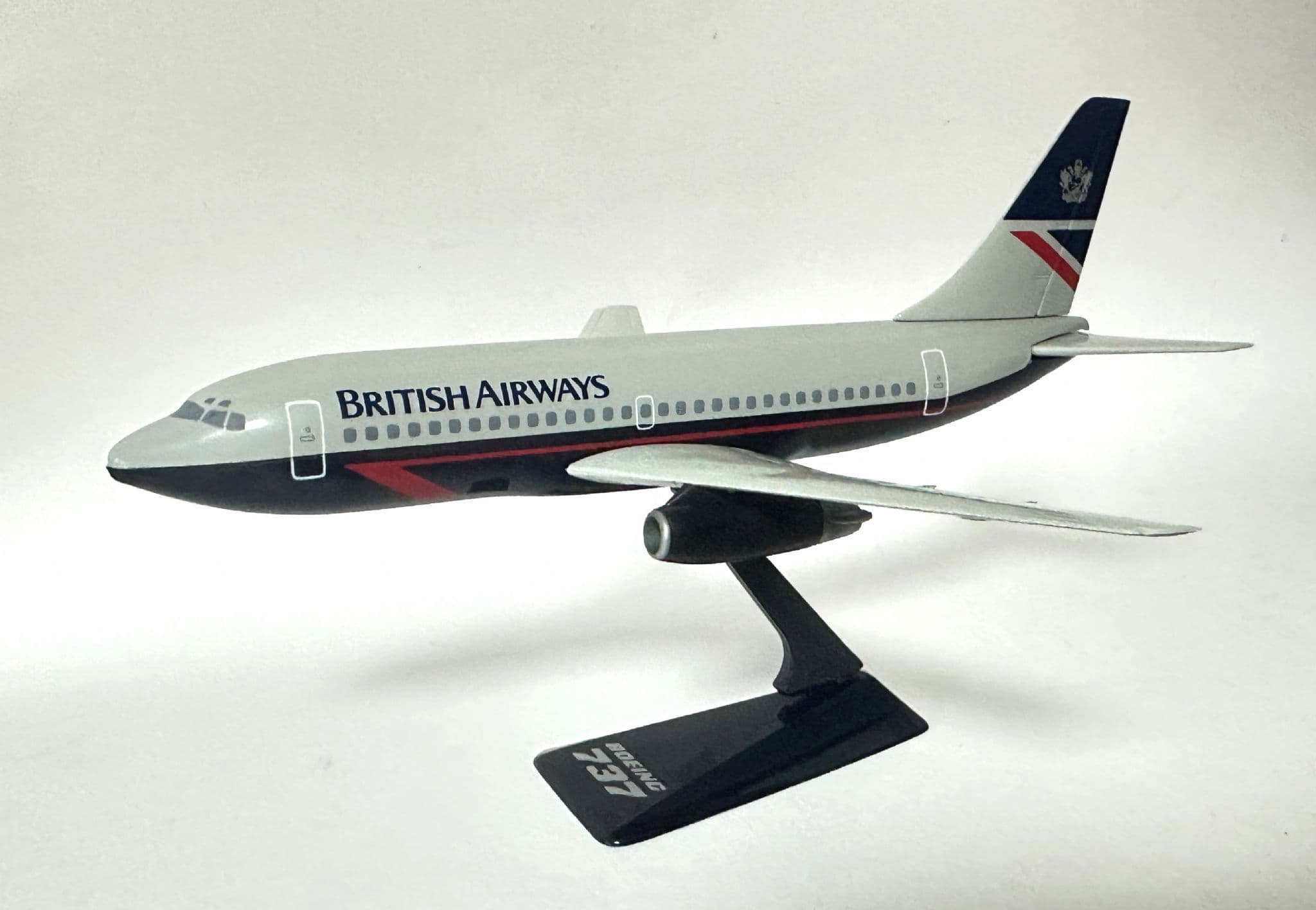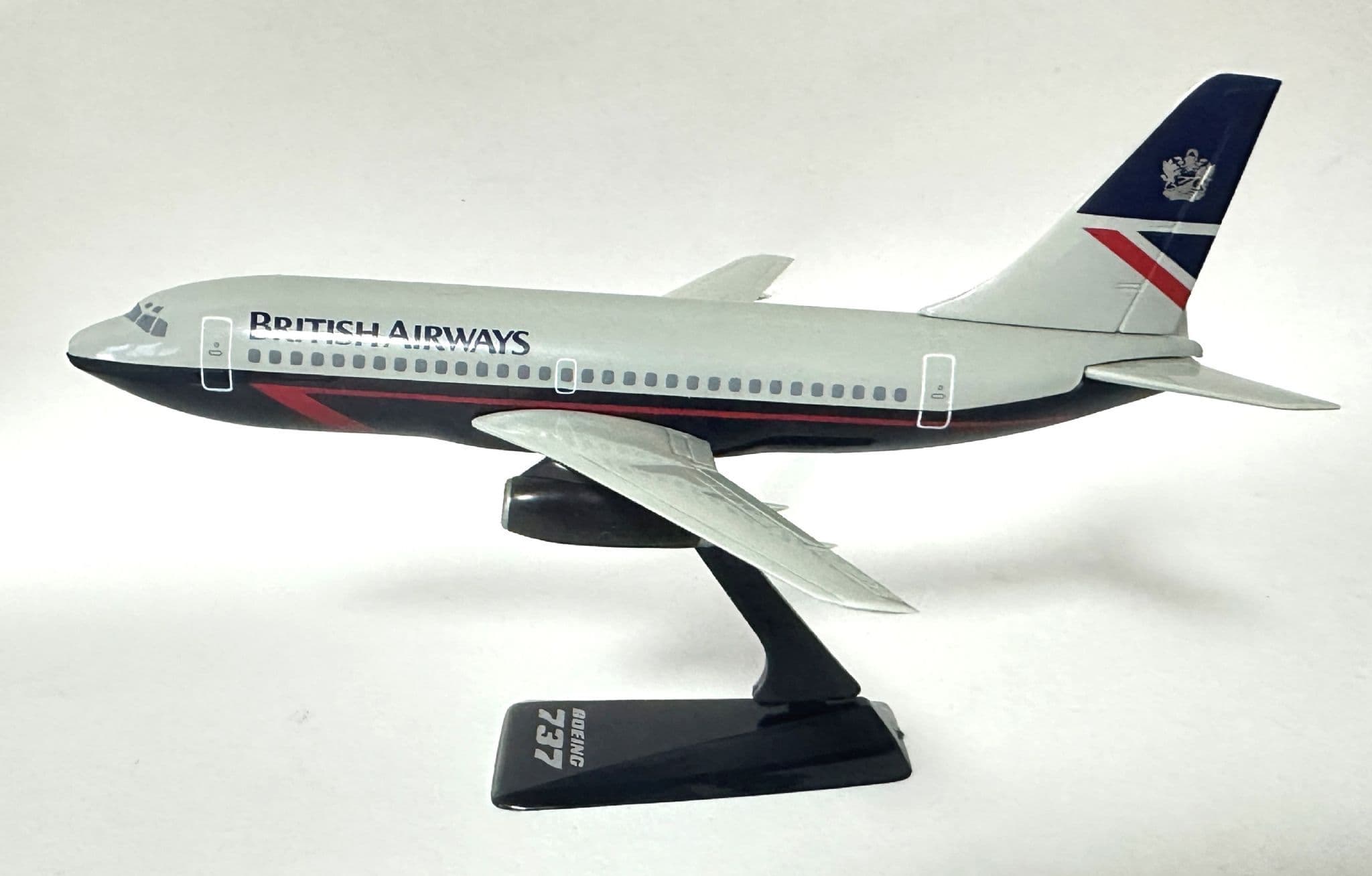 Featuring the distinctive BA livery and clean lines of the early 737-200, this model offers a charming retro display piece for collectors, enthusiasts, or anyone with an interest in vintage airliners. Lightweight and easy to assemble, it is designed for stable display on desks, shelves, or aviation showcases.