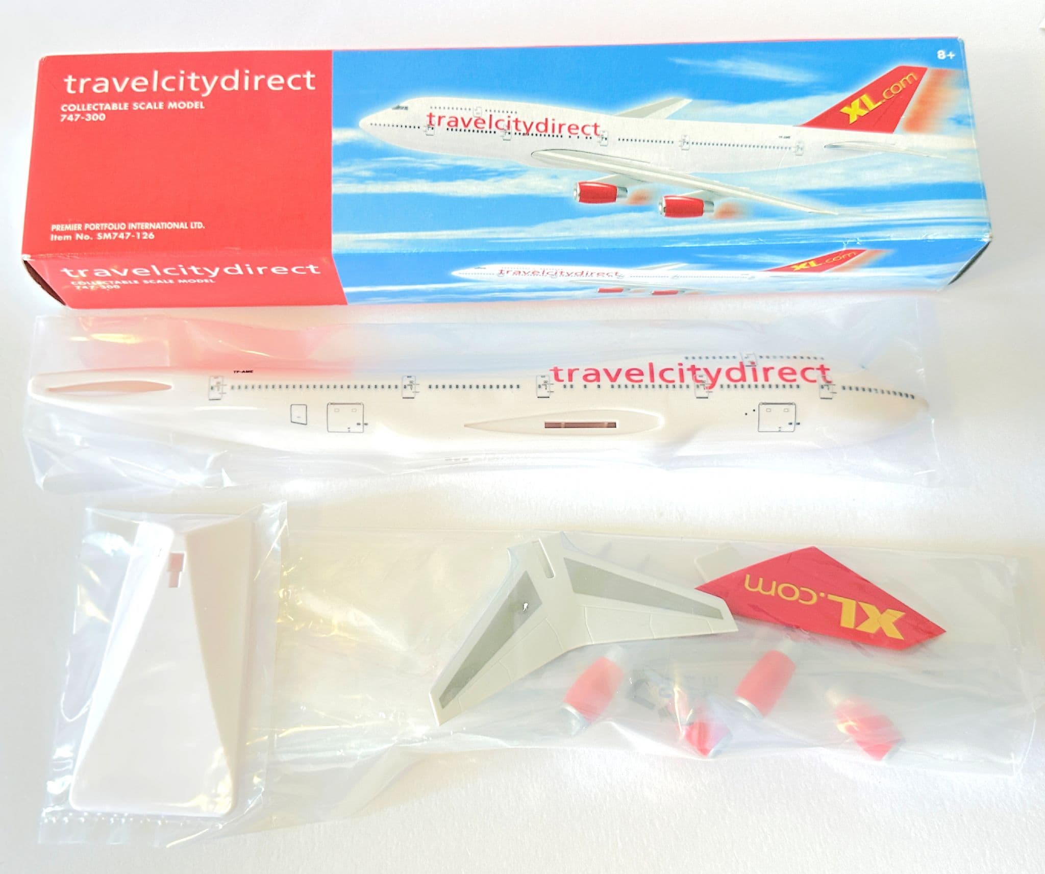 Capture the charm of a classic holiday charter airline with this Boeing 747-300 Travel City Direct Collectors Model in 1:250 scale. Representing the distinctive livery of Travel City Direct, operated by Air Atlanta, this model features the iconic stretched upper deck of the 747-300 and accurate printed detailing.