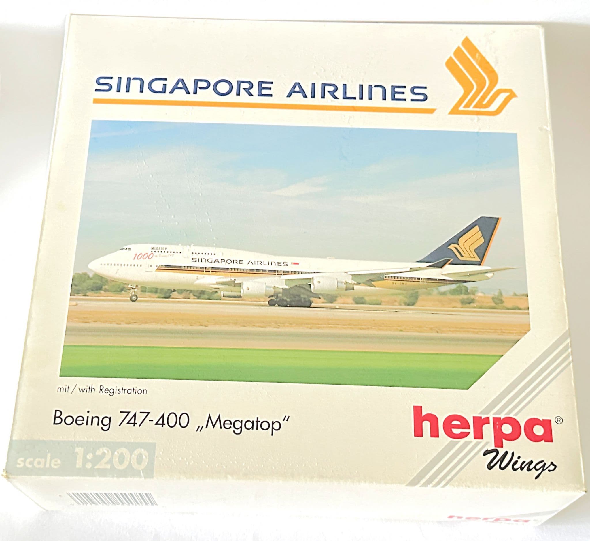 This Boeing 747-400 Singapore Airlines Herpa Collectors Model in 1:200 scale is an exquisite replica of one of the world’s most admired airlines and its legendary flagship aircraft. Featuring the elegant Singapore Airlines livery with its iconic blue and gold colours and bird logo on the tail, this model captures the sophistication and prestige that defined the carrier’s long-haul fleet for decades.