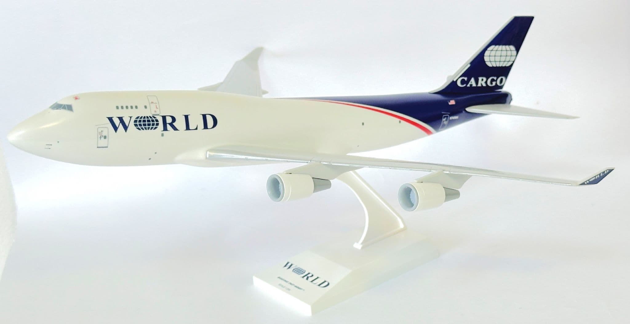 This model features the airline’s clean white fuselage adorned with the bold World Airways titles and tail logo, faithfully recreated with accurate proportions and detailing. Constructed from quality materials, it offers a premium finish and a solid feel, making it an impressive display item for any aviation enthusiast or collector.