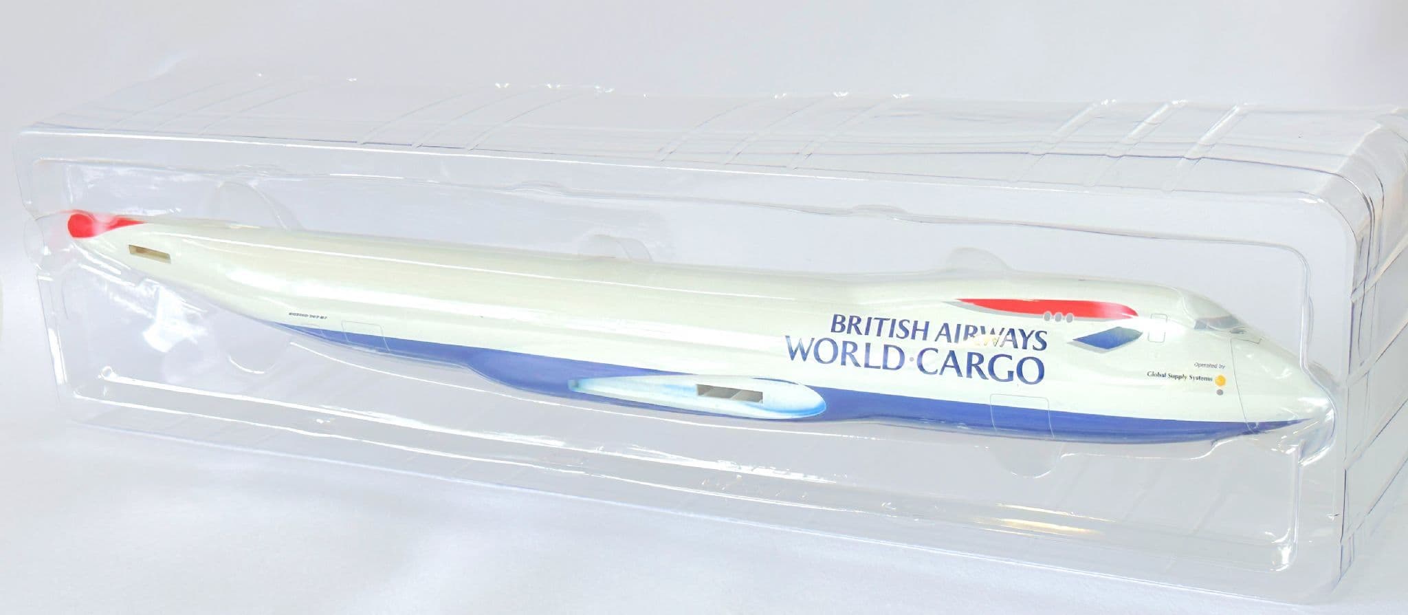 Expertly crafted by Hogan, the model is made from durable, high-quality plastic with a precision snap-fit assembly—no glue or tools required. The model features intricate printed details, including cargo door outlines, realistic engines, and the classic Union Jack tail design. A sturdy display stand is included, making it perfect for showcasing at home, in the office, or as part of a professional aviation collection.