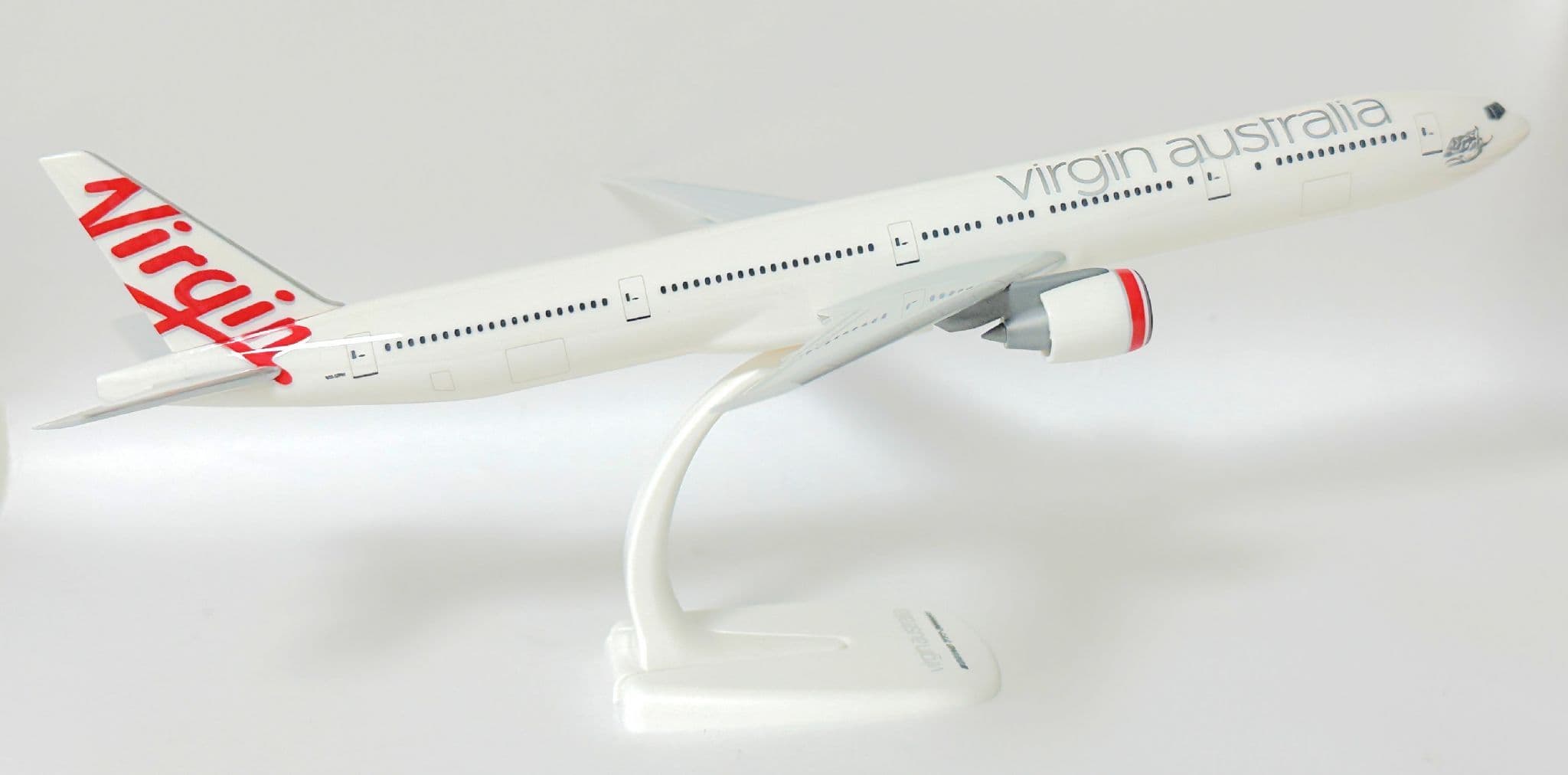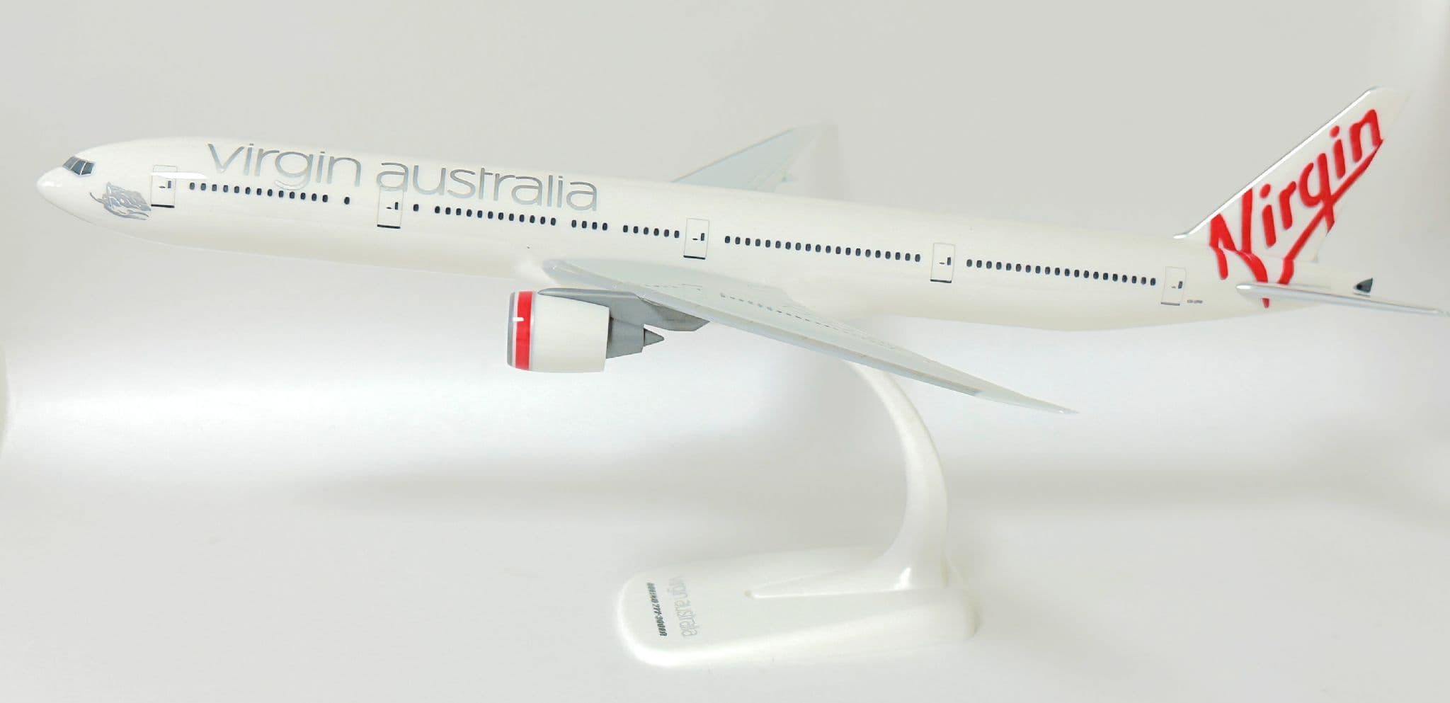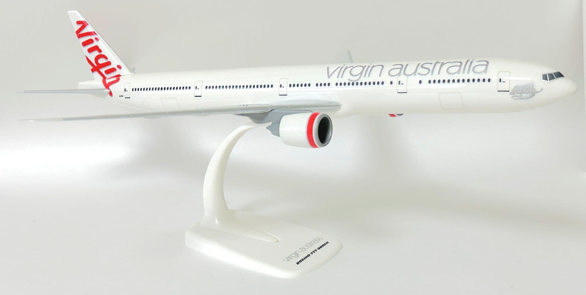 This Boeing 777-300 in Virgin Australia livery is an attractive snap-fit airliner collectors model, representing the long-haul widebody operations of Virgin Australia. The sleek lines of the 777-300 are complemented by the airline’s bold and modern colour scheme, making this a standout display piece.