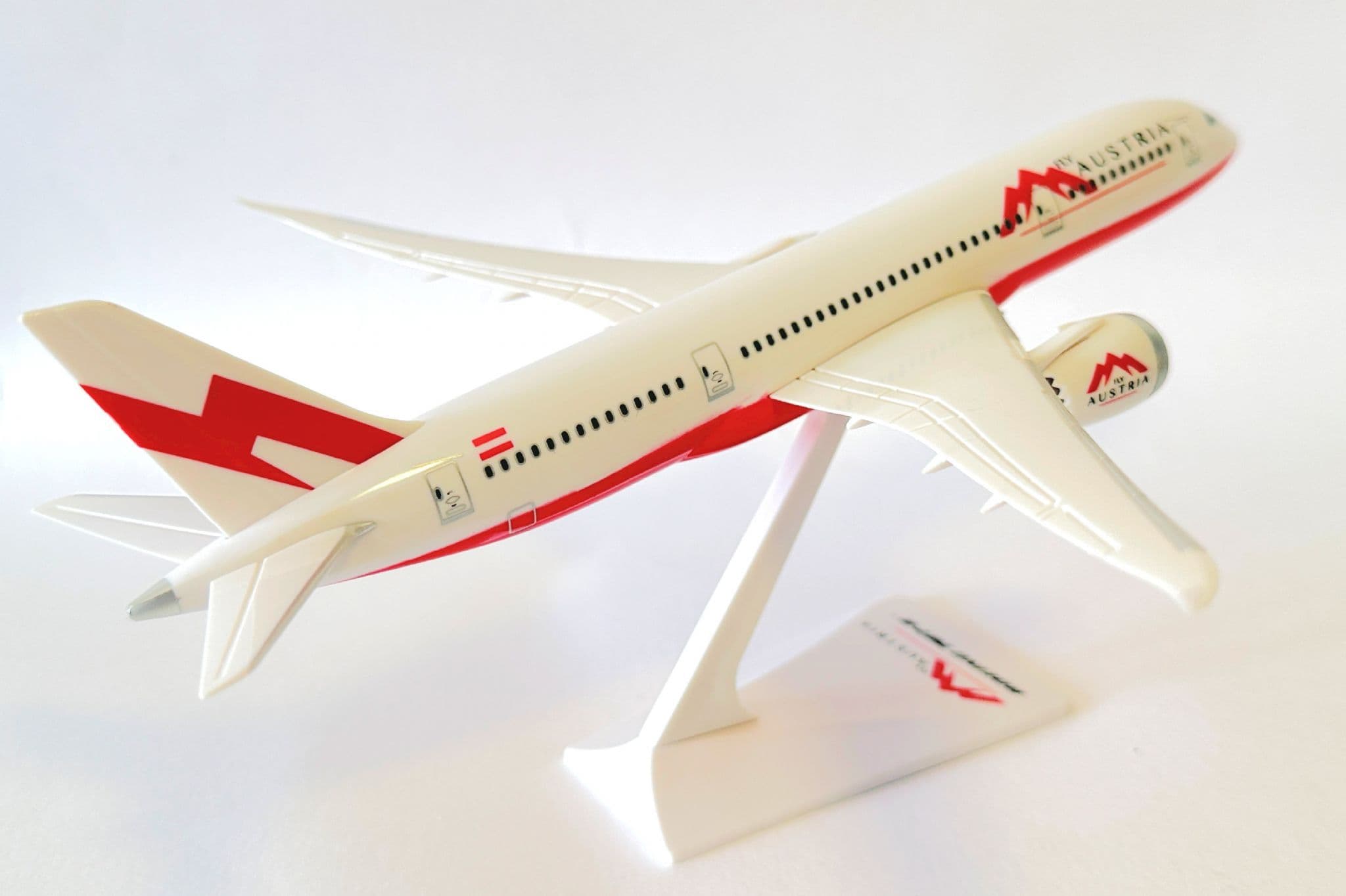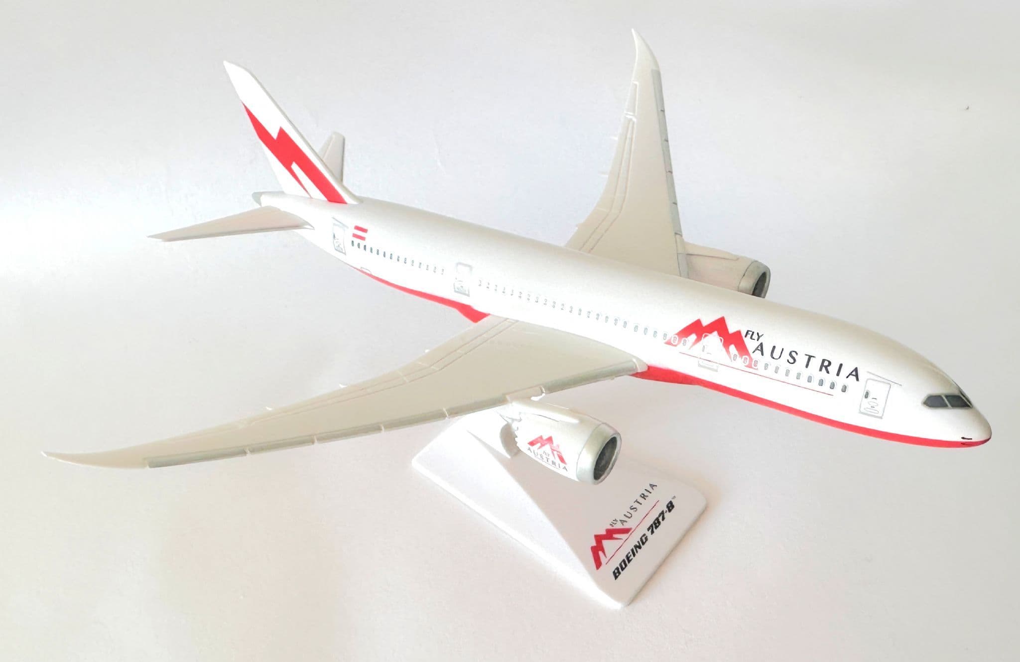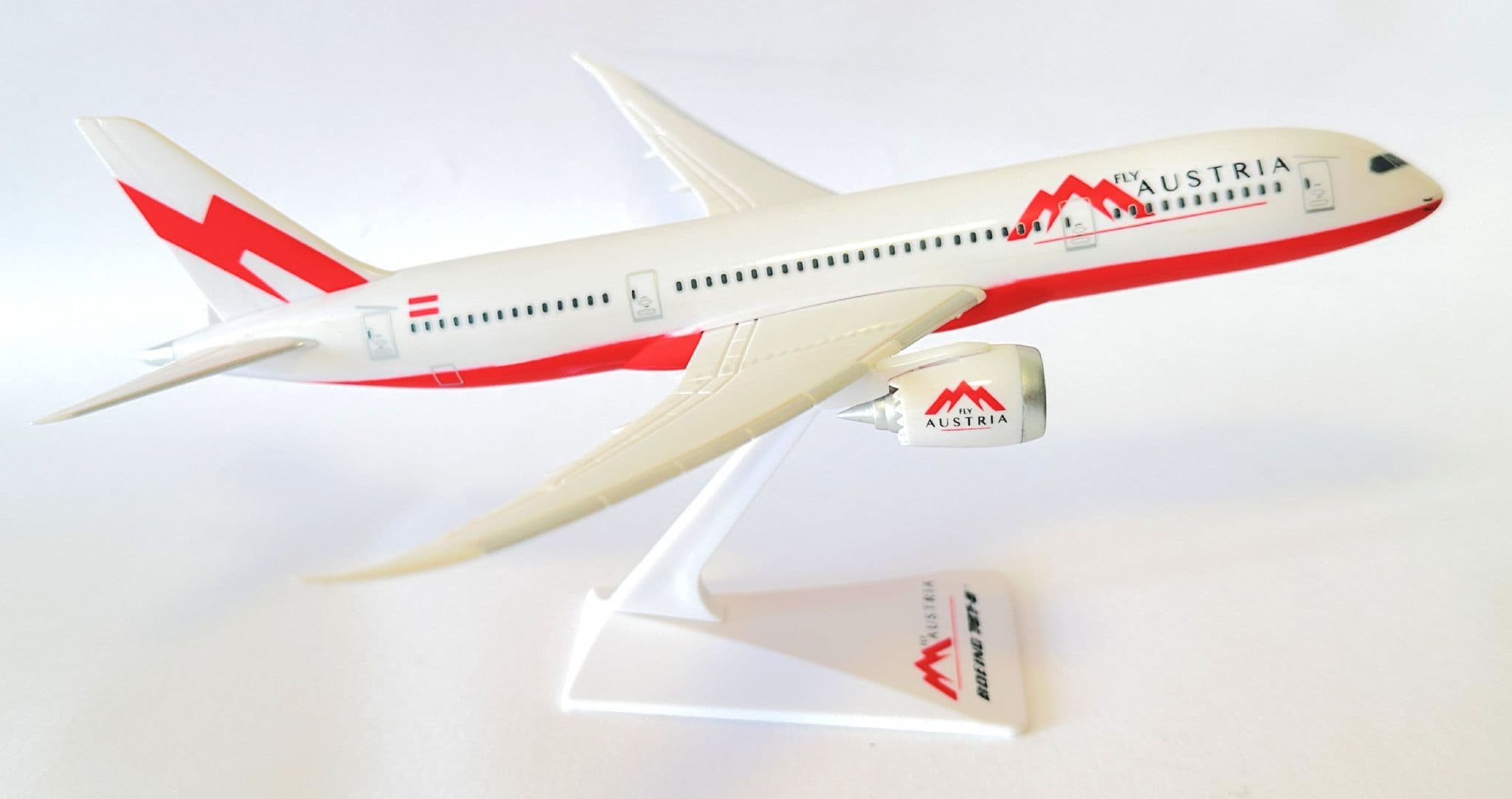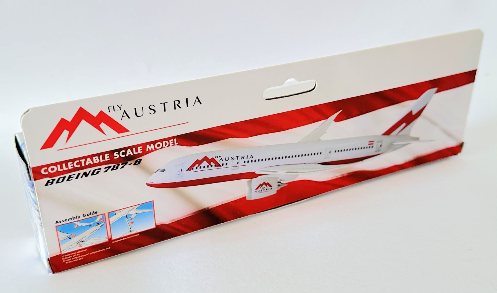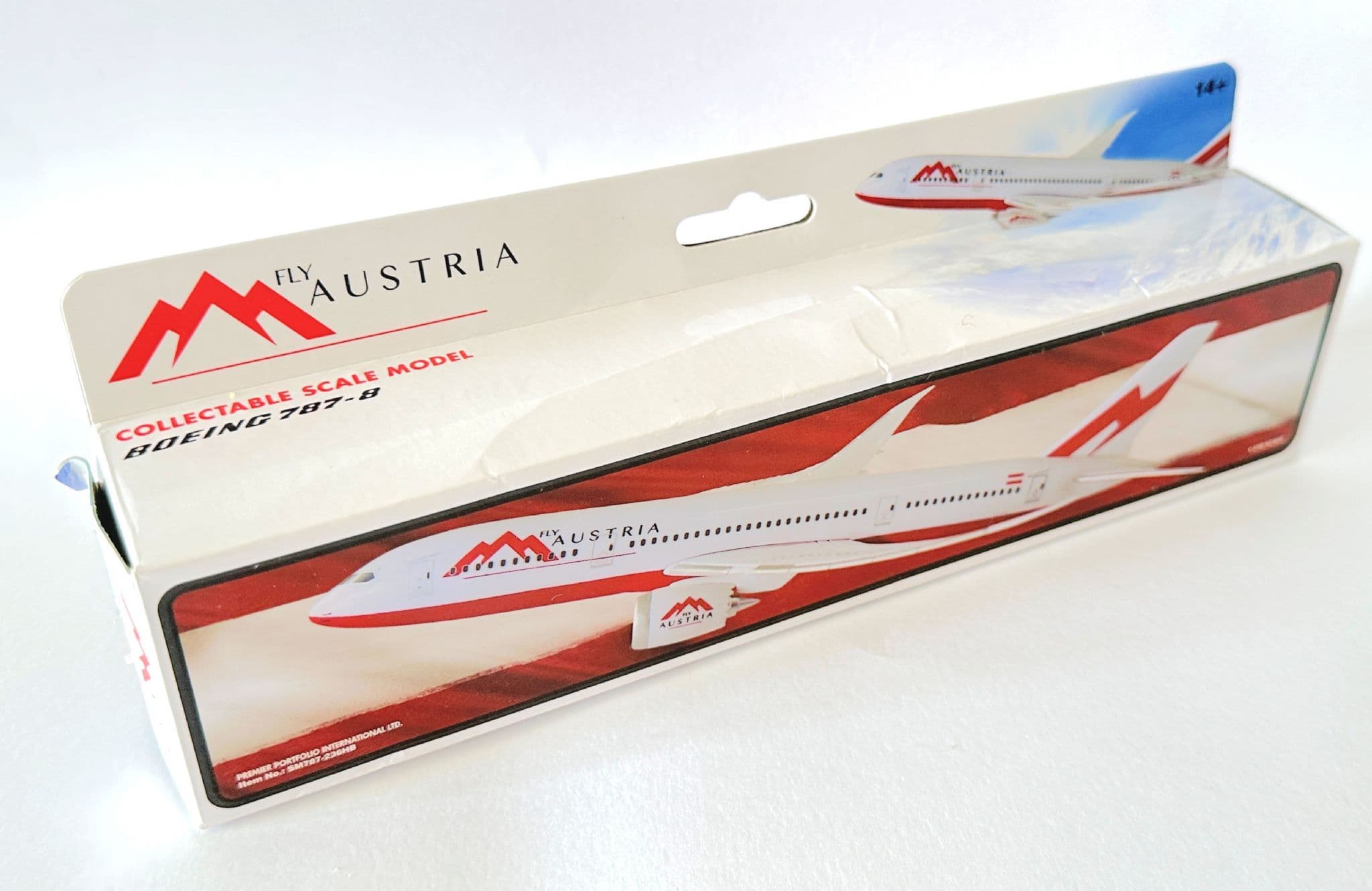 Celebrate modern Austrian aviation with this Boeing 787-8 Fly Austria Snap Fit Collectors Model in 1:250 scale. Designed with authentic livery and fine detailing, it offers a realistic representation of the Dreamliner. The snap-fit construction allows easy assembly without glue, and the included display stand makes it perfect for showcasing.