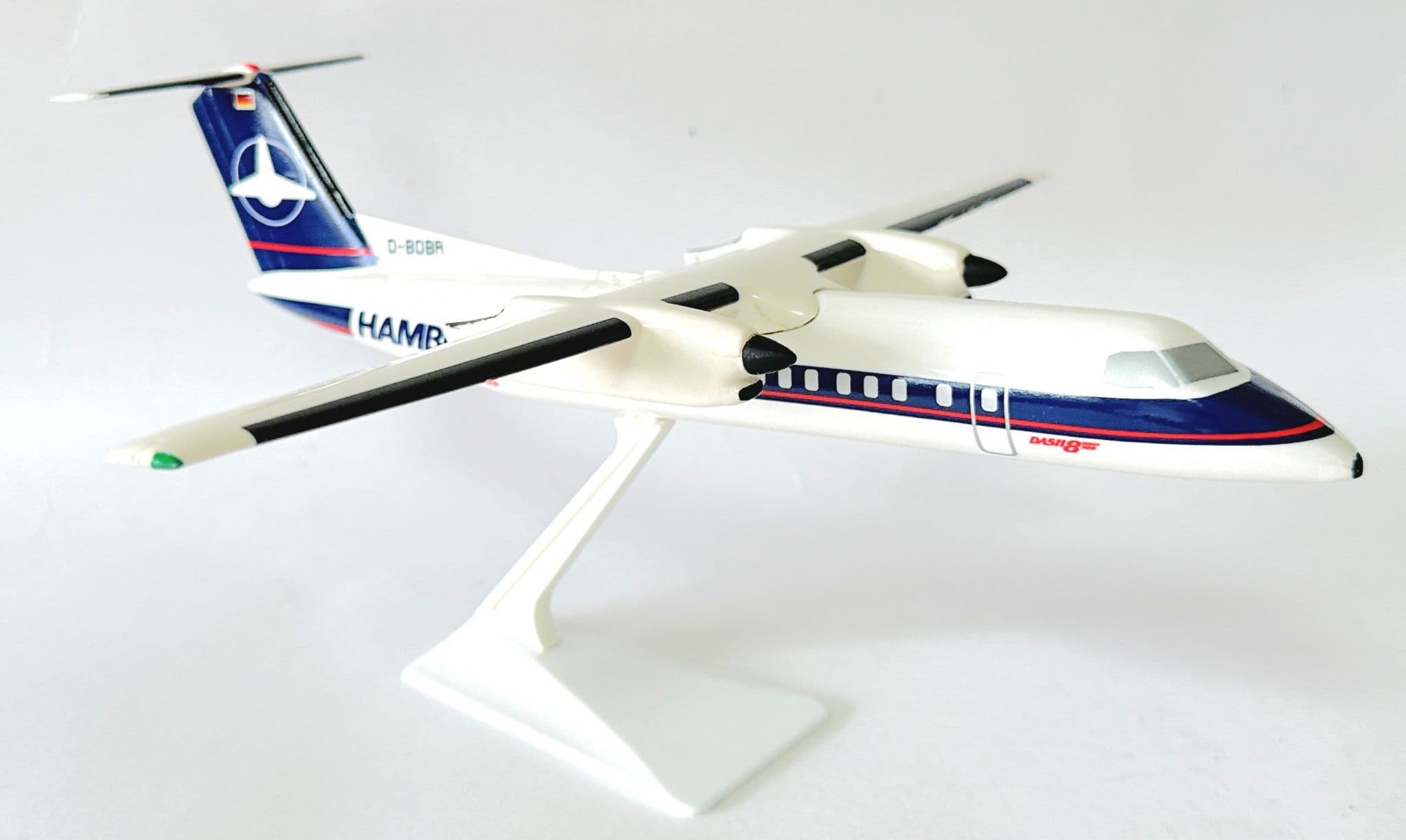 Bring a classic regional turboprop to your collection with this Herpa Snap-Fit Canadair Dash-8 DHC-8-300 in the elegant Air New Zealand livery. Produced in 1:100 scale, this model captures the distinctive high-wing design and compact profile of the Dash-8-300 with crisp printing, accurate colours, and Herpa’s reliable mould quality.