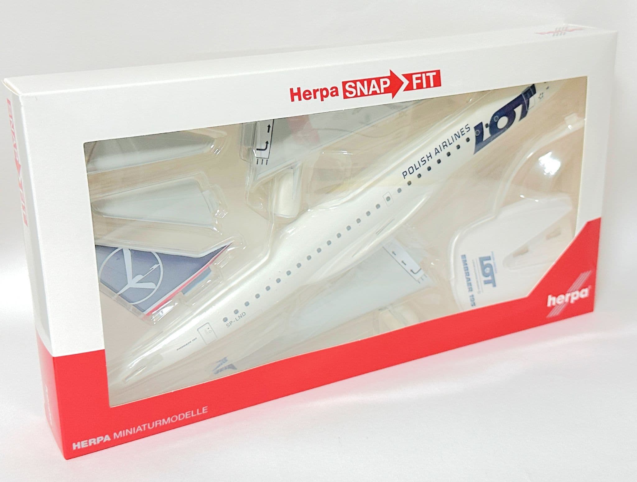 Add a beautifully detailed regional jet to your collection with this Herpa Snap-Fit Embraer ERJ-195 in the striking LOT Polish Airlines livery. Produced in 1:100 scale, this model showcases the sleek, elongated fuselage of the ERJ-195 with crisp printing, accurate colours, and Herpa’s trusted mould quality.