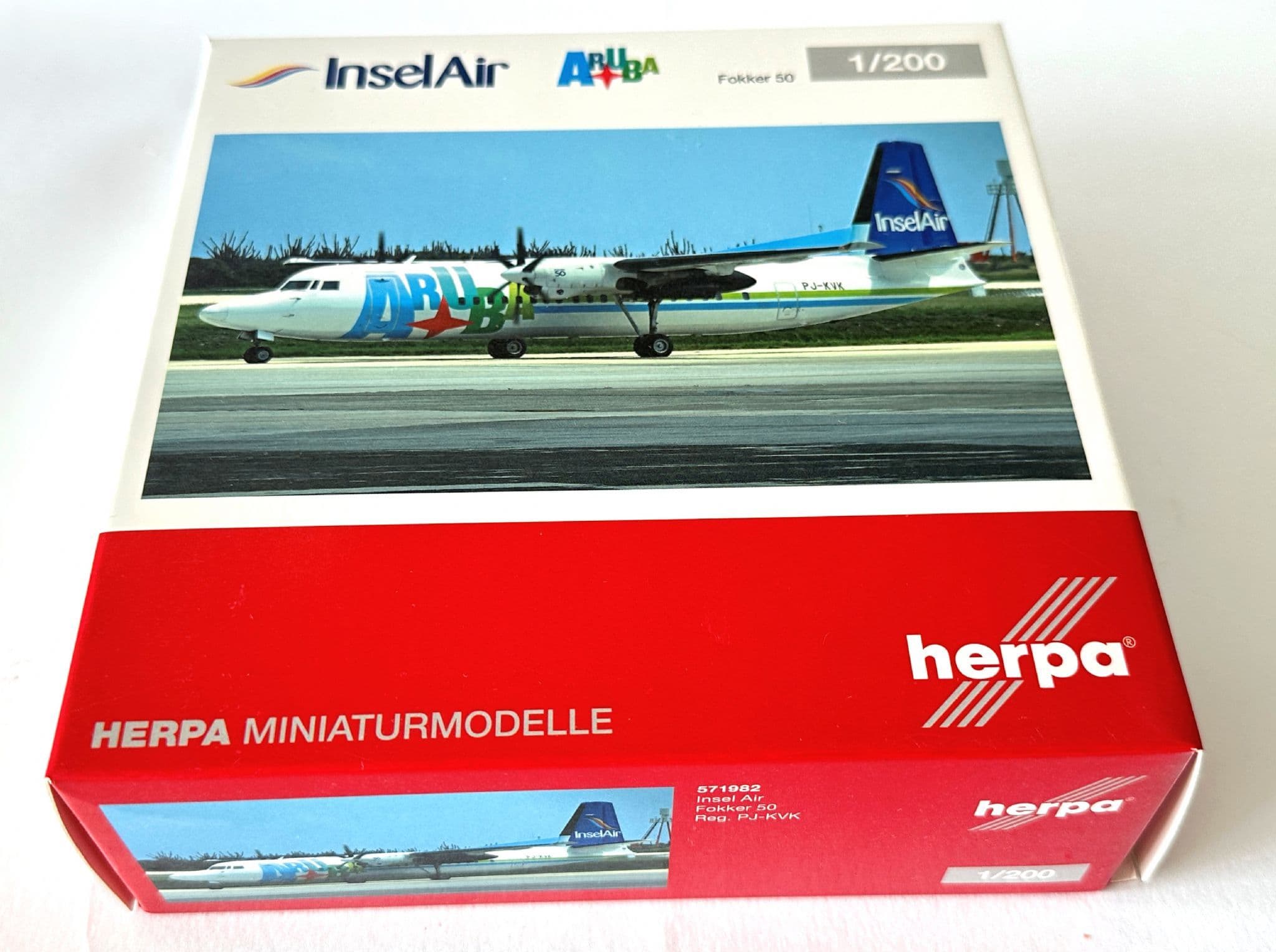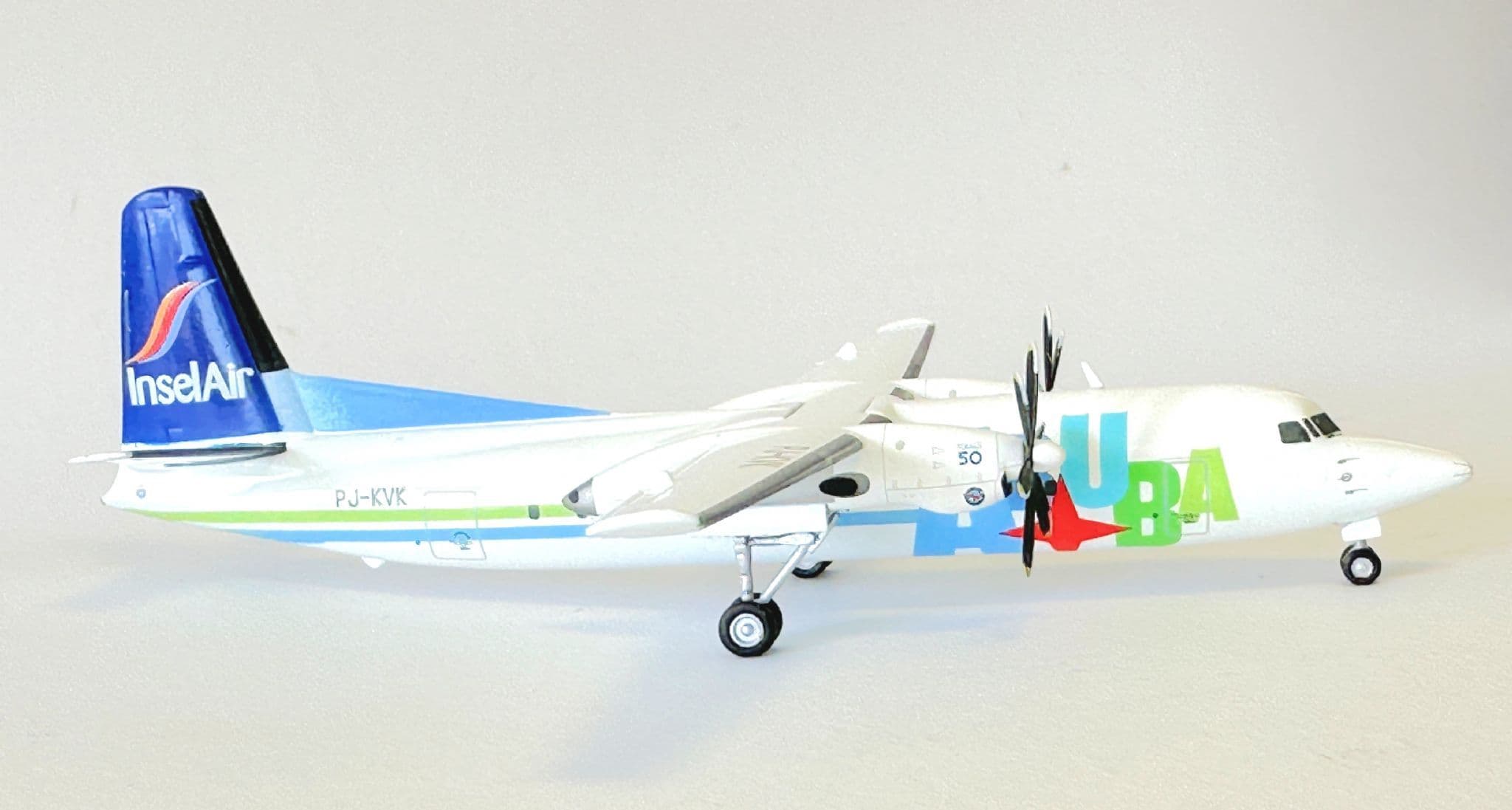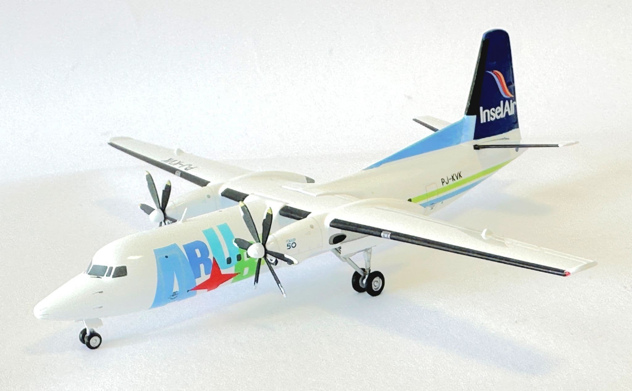 Add a rare regional aircraft to your collection with this Fokker F50 Insel Air Aruba Herpa Diecast Collectors Model. Finished in 1:200 scale, this finely detailed replica features the colourful Insel Air Aruba livery on the iconic Dutch-built turboprop, renowned for its reliability on short-haul island routes.