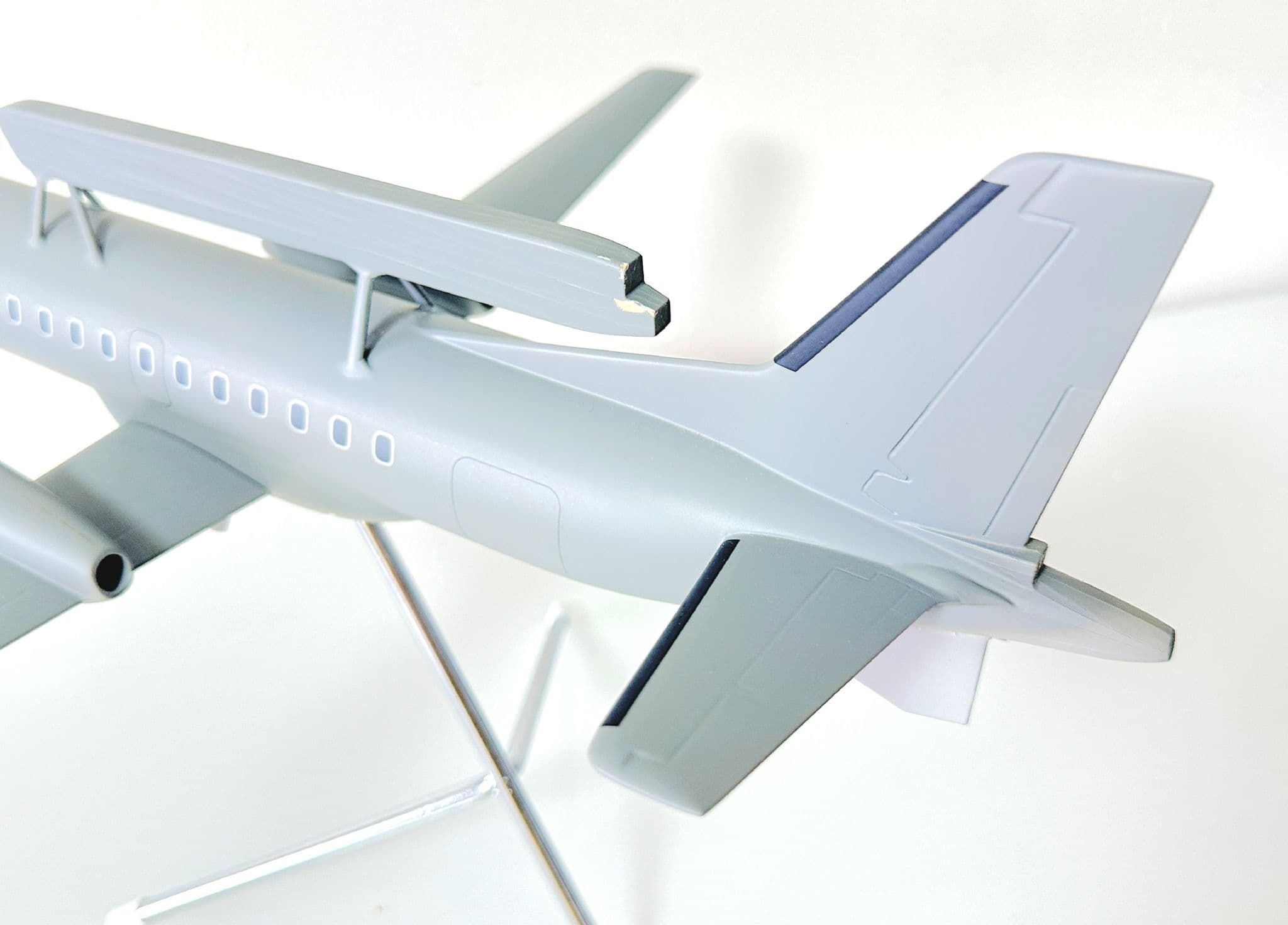 Constructed from handcrafted resin and finished with precision-applied paint, this corporate-grade model delivers museum-quality realism. Every contour, antenna, and surface detail has been faithfully reproduced to highlight the aircraft’s technological sophistication and aerodynamic design. Mounted on a metal tripod display stand, it’s an exceptional centrepiece for collectors, aviation professionals, or corporate environments.