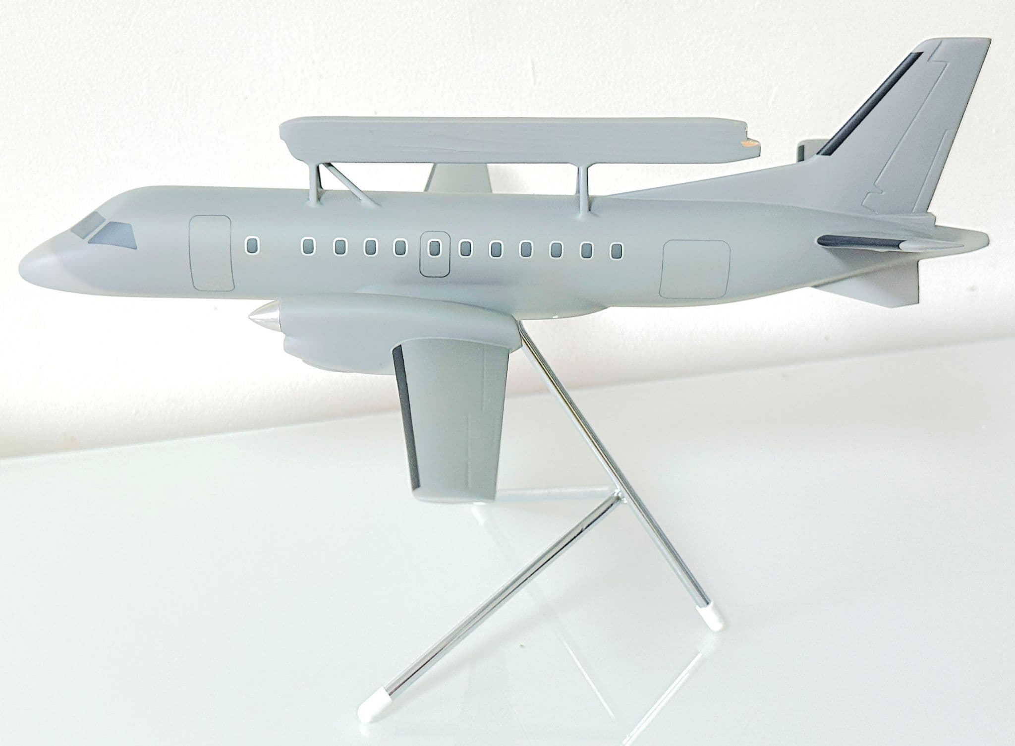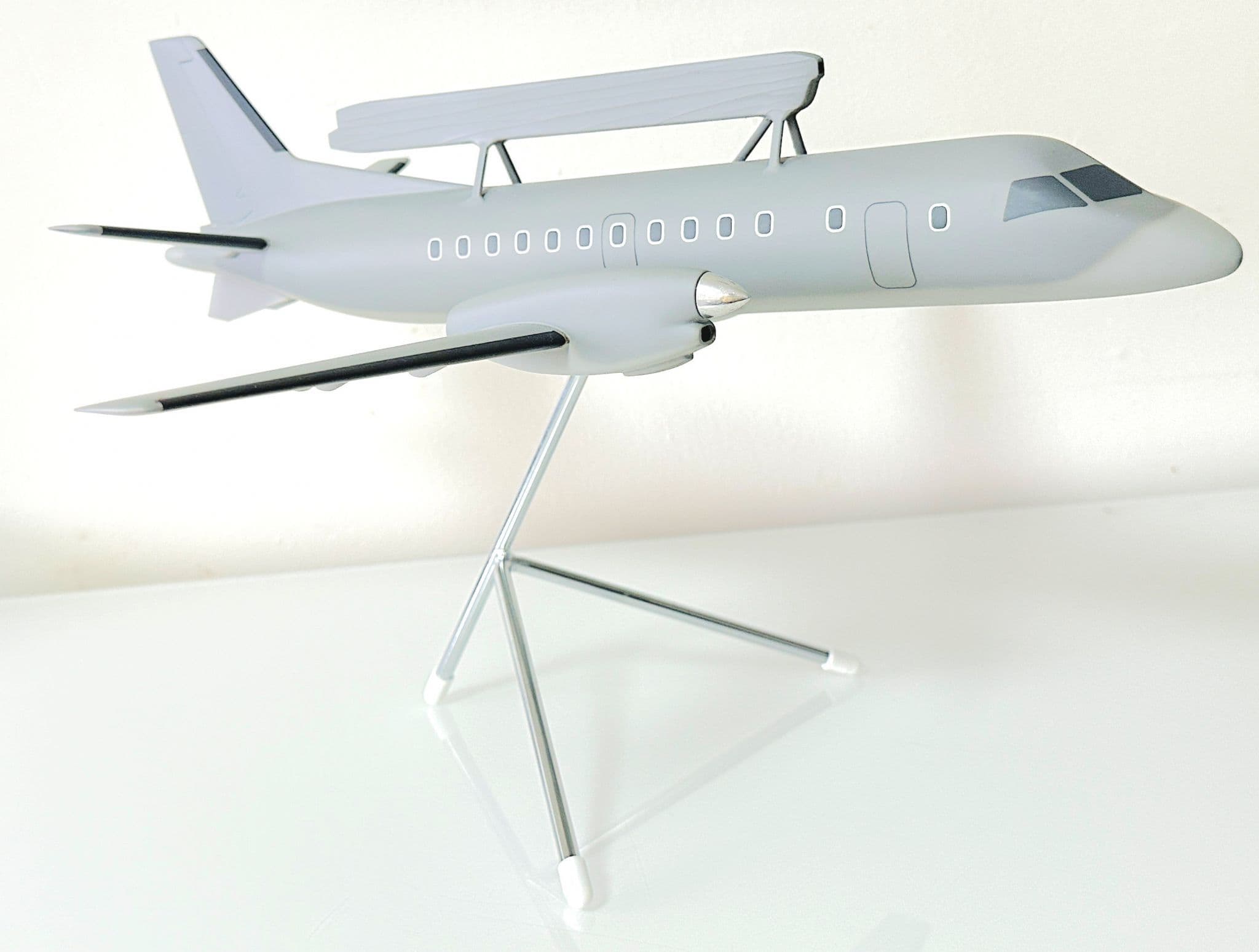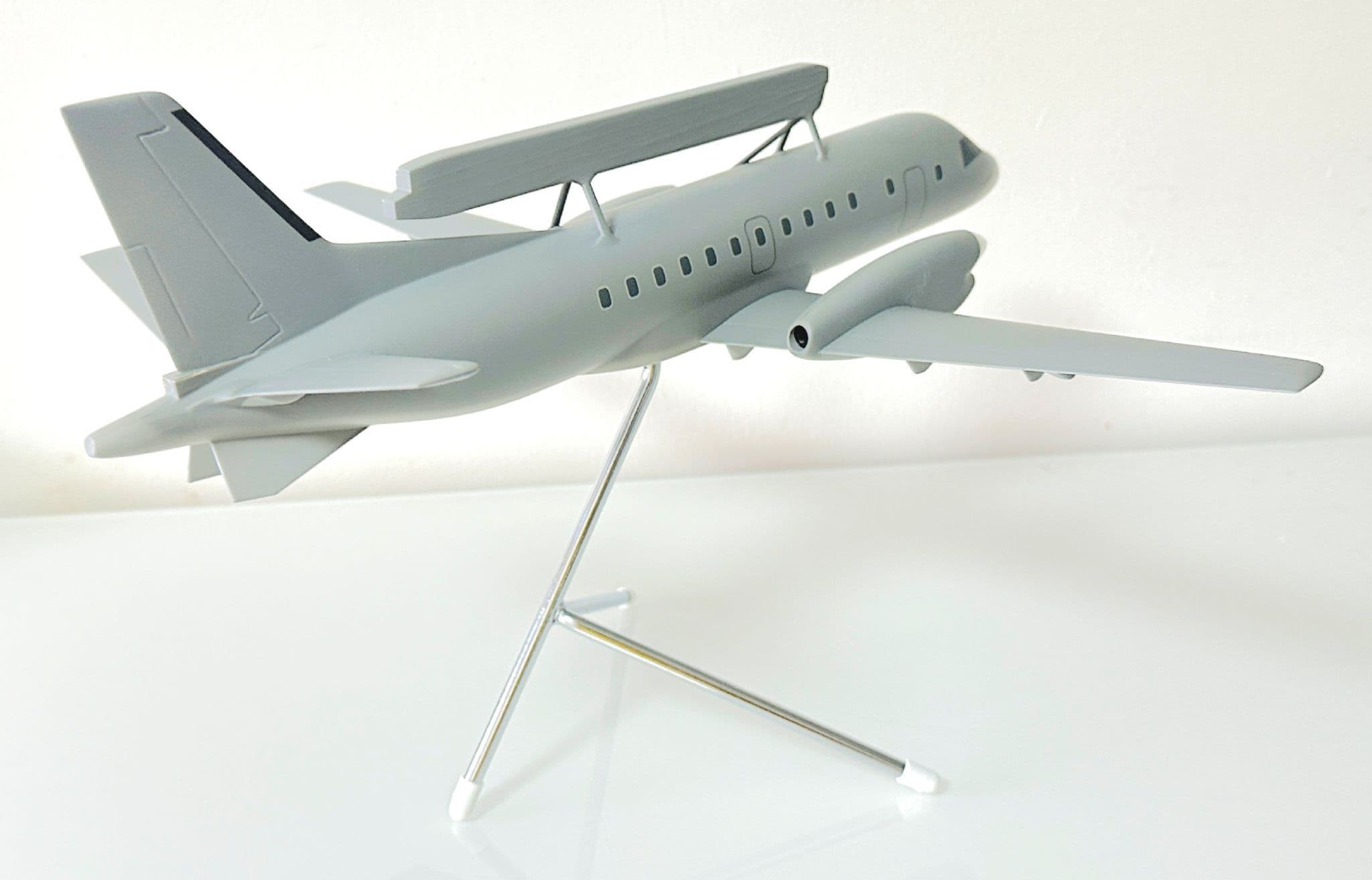 This Saab 340 AEW&C (Airborne Early Warning & Control) Space Models Collectors Model in 1:50 scale is a highly detailed and expertly crafted display piece representing one of Saab’s most advanced surveillance aircraft. Built by Space Models, a leading manufacturer of professional-grade display models, this replica captures the distinctive profile of the Saab 340 AEW&C, including its iconic Erieye radar system mounted above the fuselage.